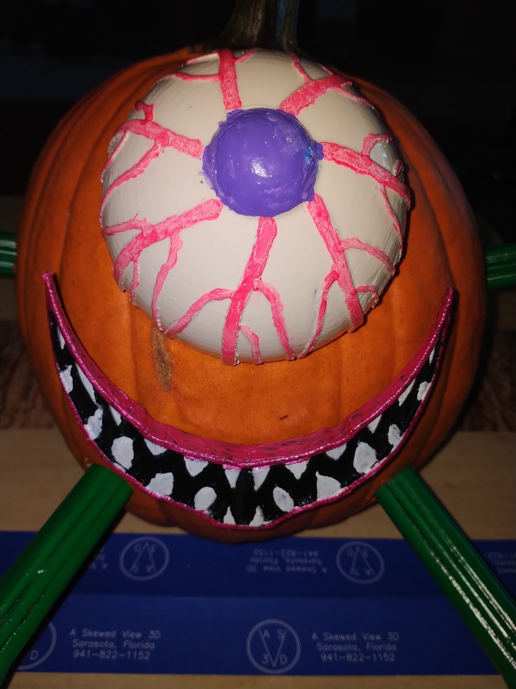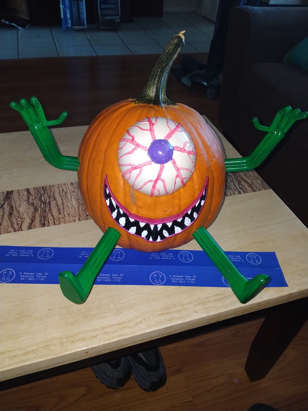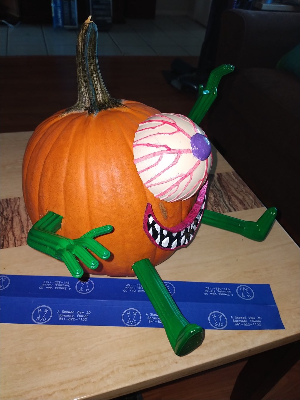 This was a design created for decorating pumpkins during Halloween season. Each file is a separate body part. The leg is identical, and printed twice.